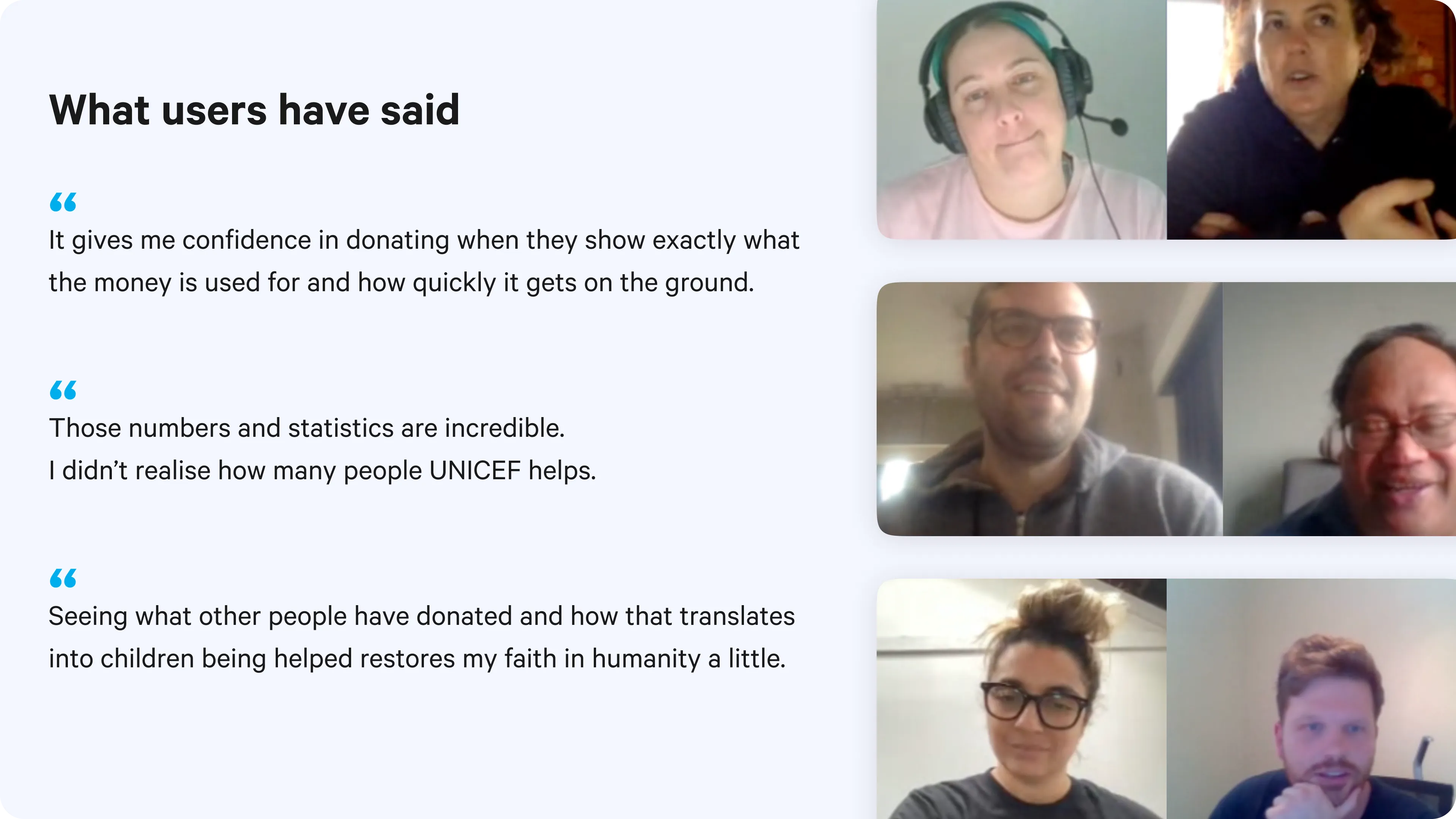 - Interviewed UNICEF team members to understand their perspective on the organisation's unique value proposition.