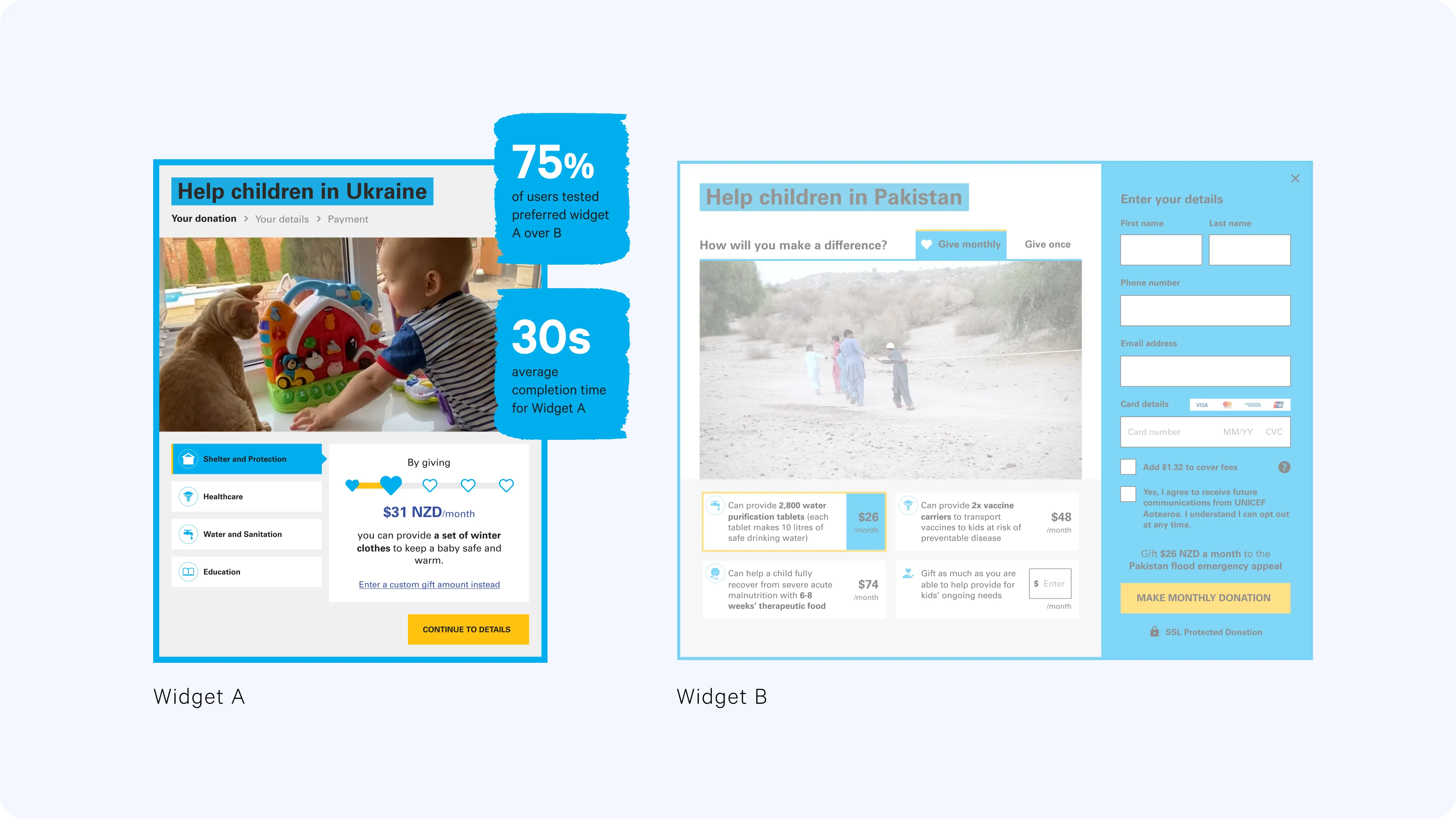 UNICEF Aotearoa needed to pivot from face-to-face fundraising to digital-first donor engagement, but their existing website was failing to convert visitors into regular donors. As Product Design Lead, I guided a comprehensive digital transformation that balanced urgent business needs with careful stakeholder management and user-centered design principles.